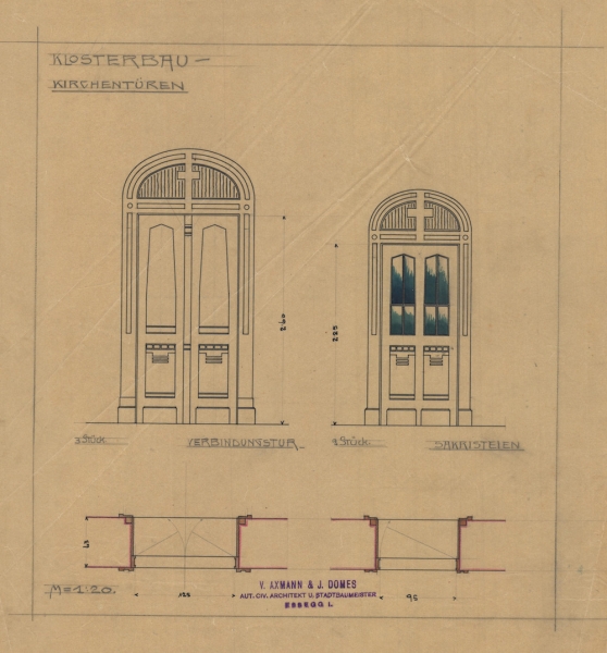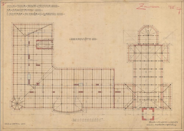 Od početka projektiranja do završetka radova prošlo je tri godine, a projekt potpisuju osječki graditelji Viktor Aksmann i Ivan Domes. Nova provincijalna kuća u Đakovu, zajedno s crkvom, na zemljištu koje je sestrama darovao biskup Strossmayer, završena je 1908. godine, a crkva blagoslovljena 14. rujna iste godine.